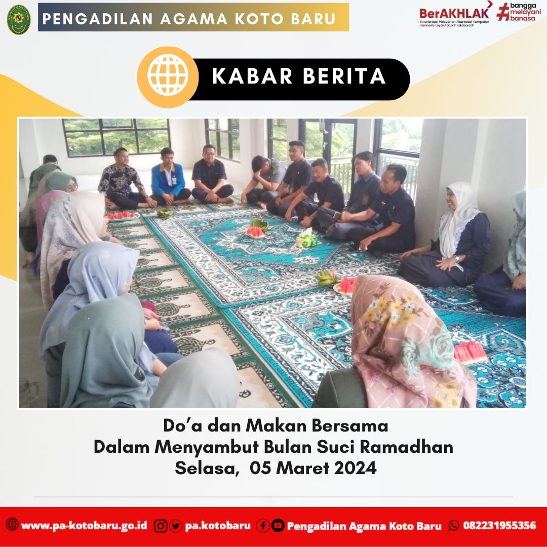 Semoga acara ini bisa menjadi langkah awal yang baik untuk memaksimalkan segala hal dalam menyambut bulan suci Ramadhan dan diridhoi oleh Allah SWT selalu Pengadilan Agama Koto Baru. Aamiin.