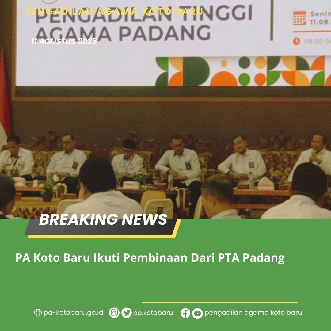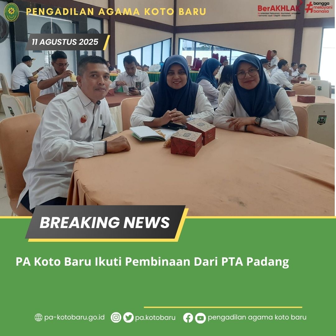 Pengadilan Agama Koto Baru turut serta dalam kegiatan pembinaan bagi Pengadilan Agama se-wilayah Pengadilan Tinggi Agama (PTA) Padang, pada hari Senin, 11 Agustus 2025, bertempat di Balairung Lansek Manih Sijunjung.